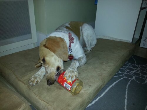 Funny how dogs love peanut butter so much!